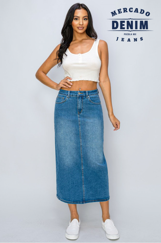 Falda larga básica tono medio